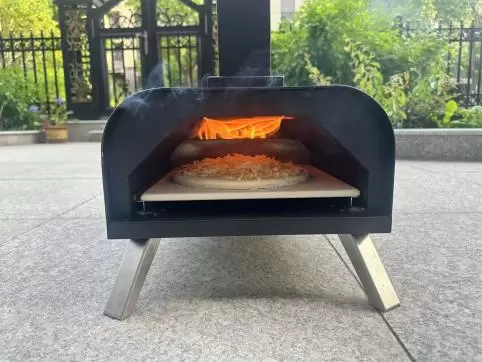 Cottura rapida: piastra riscaldante in cordierite a doppio strato + controllo del flusso d'aria con valvola a farfalla, riscaldamento fino a 950 °F in 15 minuti, cottura completa di una pizza da 12 pollici in 90 secondi